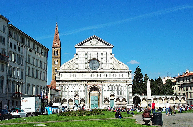 義大利遊記-佛羅倫斯(Florence) 佛羅倫斯的城市規模...說大不大, 說小不小...馬路倒都是小小條...開車有點不方便... 幸好, 主要景點還蠻集中的...基本上遊佛羅倫斯用走的比開車還適合... 新聖母大殿 (Basilica di Santa Maria Novella)