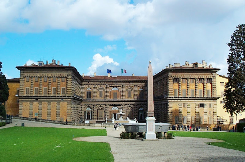 佛羅倫斯碧提宮 (義大利文:Palazzo Pitti)是一座規模宏大的文藝復興時期佛羅倫斯的宮殿。 位於阿諾河的南岸,距離老橋只有一點距離。1458年建造時原是一位佛羅倫斯銀行家盧卡·碧提的住所。 1539年,這個宮殿由梅迪奇家族購下,並作為托斯卡尼大公的主要住所。通過世代累積碧提宮逐漸儲藏了大量的繪畫、珠寶和貴重的財寶。 後來到了18世紀晚期,碧提宮被當做了拿破崙·波拿巴的權利中心,後來統一後的新義大利皇室也曾在此短暫居住。 1919年,維托里奧·埃馬努埃萊三世把宮殿和藏品一起捐獻給義大利人民,現作為佛羅倫斯最大的美術館對公眾開放。 米開朗基羅廣場 (Piazzale Michelangelo)是義大利佛羅倫斯最著名的俯瞰該市美麗全景的地點。 這個著名廣場位於該市阿諾河南岸,市中心以南的奧特拉諾區的山上,是一個熱門旅遊景點,吸引了無數遊客,出現在許多明信片中。